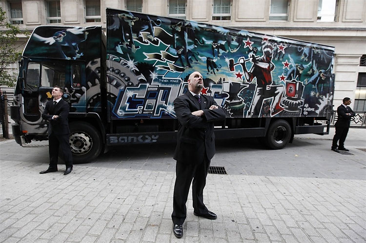 それはもうかなり昔の話、超無名だった頃のBanksyがあるトラック(Volvo FL6 17 Ton Box Iorry truck)に作品をペイントしたそうです!そして今超有名になった彼の作品がオークションに登場します。