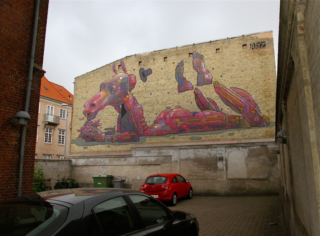 現在Os Gemeosと共にポーランドで壁画を制作している (参照), Aryzがポーランド訪問直前にデンマークで描いた壁画がこちらです!